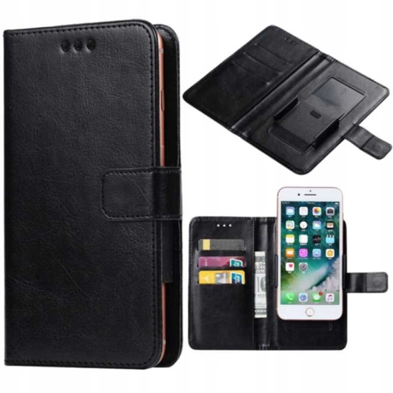 Eleganckie etui portfel z kieszonkami na dokumenty. Umożliwia ułożenie telefonu w pozycji poziomej, co jest szczególnie wygodne podczas oglądania filmów. Wykonane z wysokiej jakości skóry ekologicznej i wytrzymałego tworzywa. Za sprawą montażu szynowego, etui jest kompatybilne z większością smartfonów dostępnych na rynku. Ponadto gwarantuje całkowite bezpieczeństwo i stabilność urządzenia w każdej pozycji. Posiada wbudowane magnetyczne zamknięcie, które stanowi dodatkowe zabezpieczenie przed przypadkowym otwarciem etui.